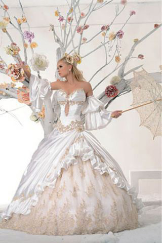 There’s a specially crafted wedding gown waiting to be owned in French lace and gorgeous taffeta. It’s meant for those who dare to combine the traditional, the modern and the classic in a wedding dress! There is tremendous care taken over blending the beautiful lace flounces with fine taffeta in exclusive design. If you believe you own the grace and the personality to carry this off, then this is certainly the bridal dress awaiting you. Brooklyn, New York, is the place to head for this piece of art!